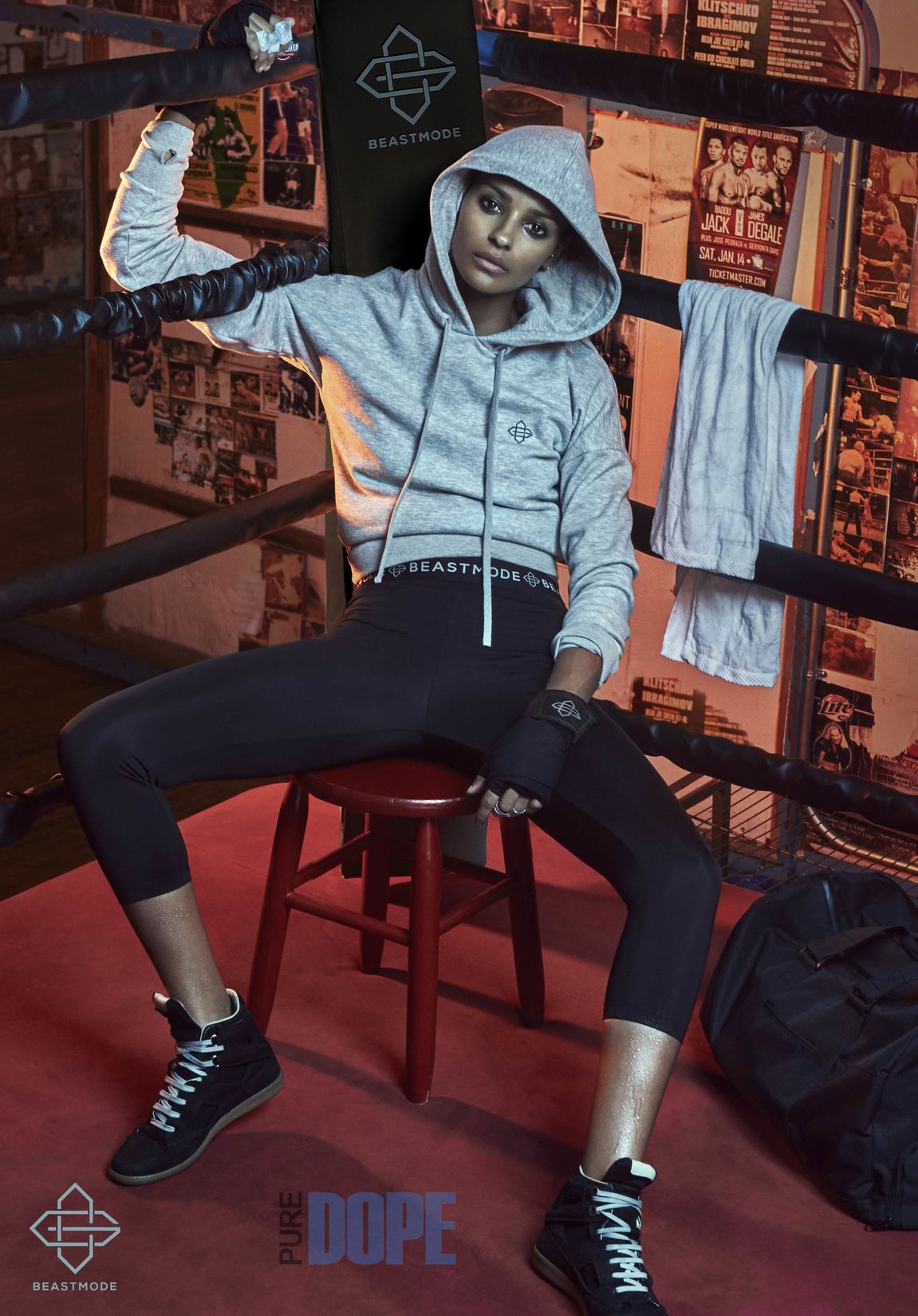 Muay Thai, mega modeling, and Beast Mode succinctly summarize the sexy meets swagged out women’s collection from Superbowl Champion Marshawn Lynch’s fitness lifestyle line: And at his request a lioness has entered the den. The former NFL superstar handpicked Brazilian-born supermodel Gracie Carvalho in large part due to her blend of beauty, athleticism, and high glam girl power vision. The two met last year, discussed the similarities in their workout routines, upbringings, and indefatigable approaches to winning at whatever they endeavor to do. Those shared interests culminated in this stellar Gracie x Beast Mode collaboration, the first women’s collection from the popular athleisure brand. The collection is currently on sale exclusively at Beast Mode stores in Oakland, California and Seattle, Washington, and also via the company’s official online store.